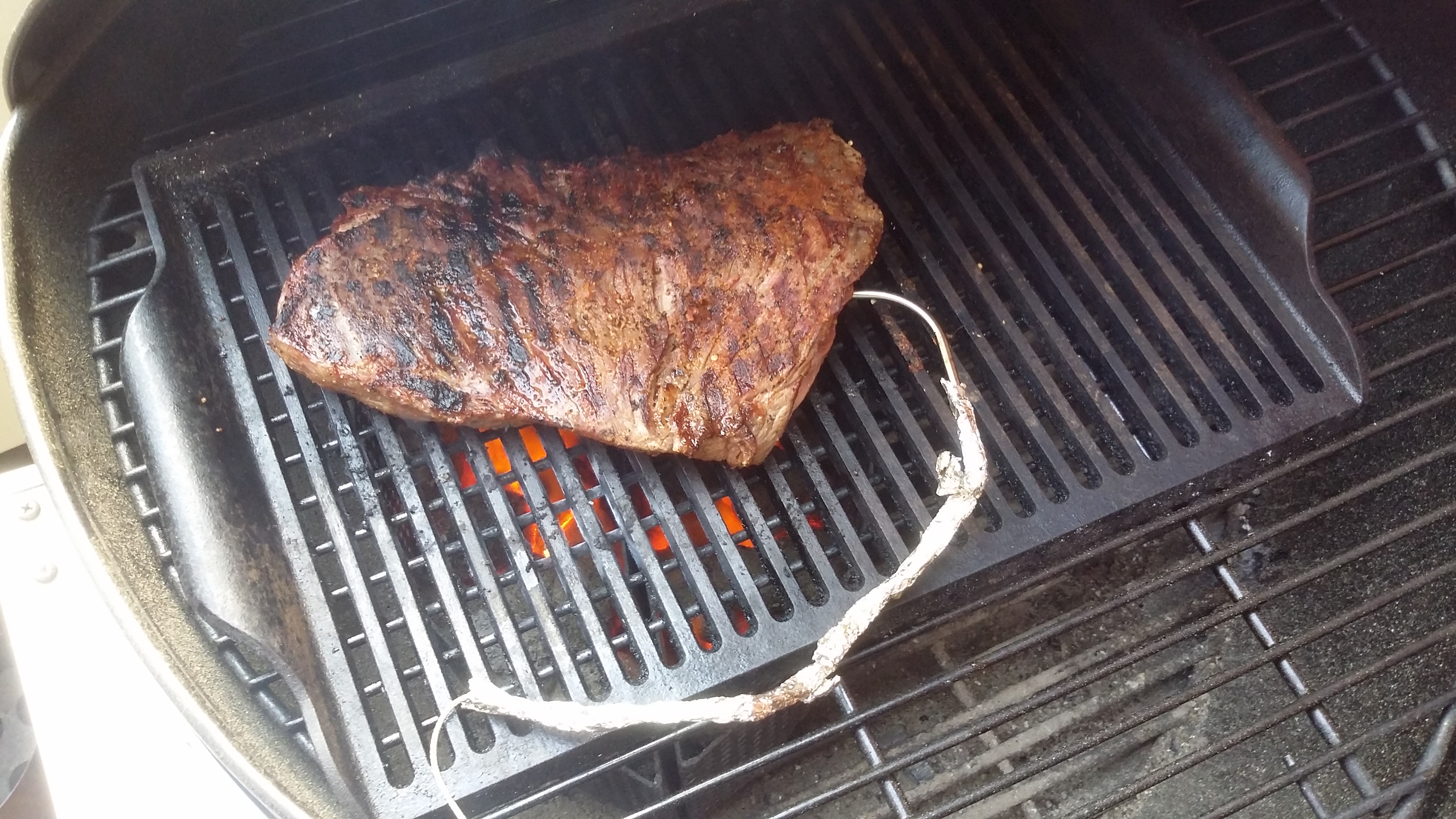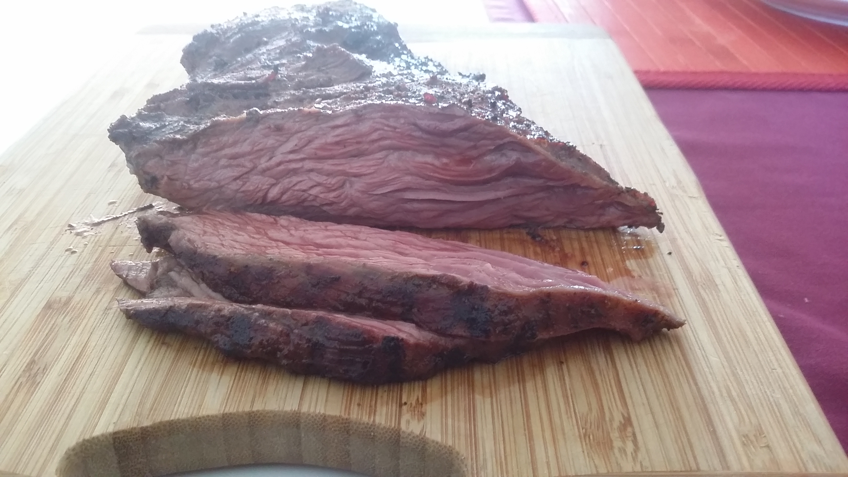 Pátral jsem jak se tomuhle luxusnímu kusu masa říká tady. V Americe je to flank, vedle je skirt. Tady je to oboje pupek, ten se ale normálně prodává na kousky nakrájený, nasekaný, i s kostmi jako maso do polévky. Je potřeba si to u řezníka objednat. Ale stojí to za to. HP