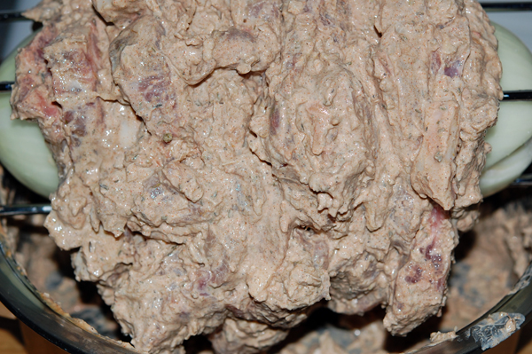oboustranně potřeme marinádou. Doba marinování je 24 hodin. Nejlépe v kastrolu s víkem a v lednici. Druhý den je maso možno grilovat na rožni, ale přidám zítra fotku kde je možnost přípravy i v troubě. Ořezáváme pak každou půlhodinky vrstvy masa. viewtopic.php?f=19&t=6&p=6#p6