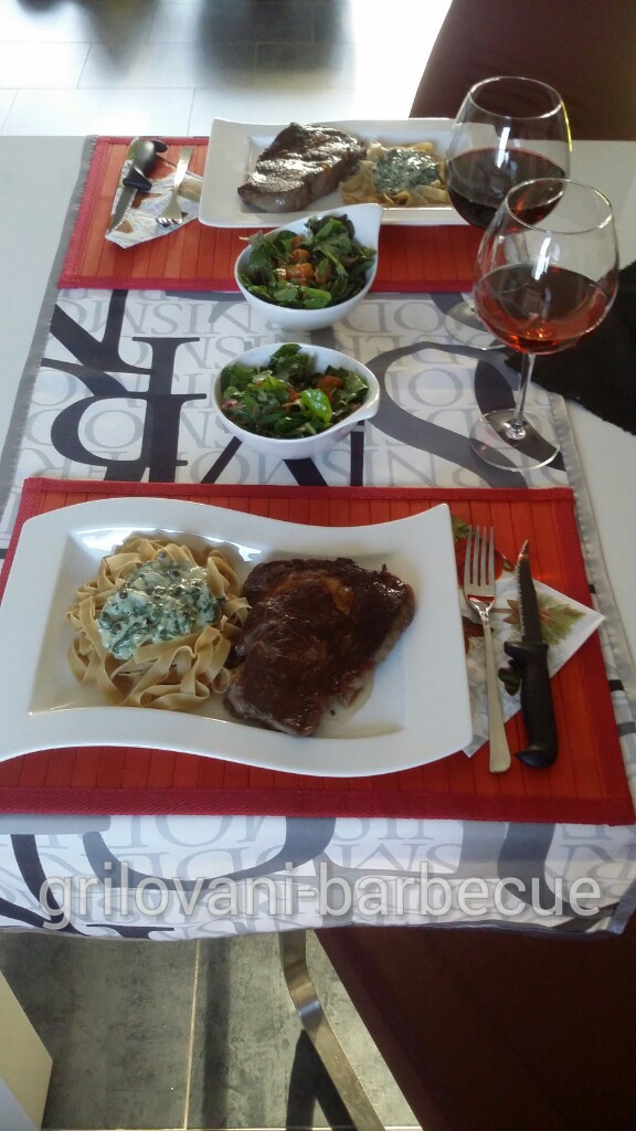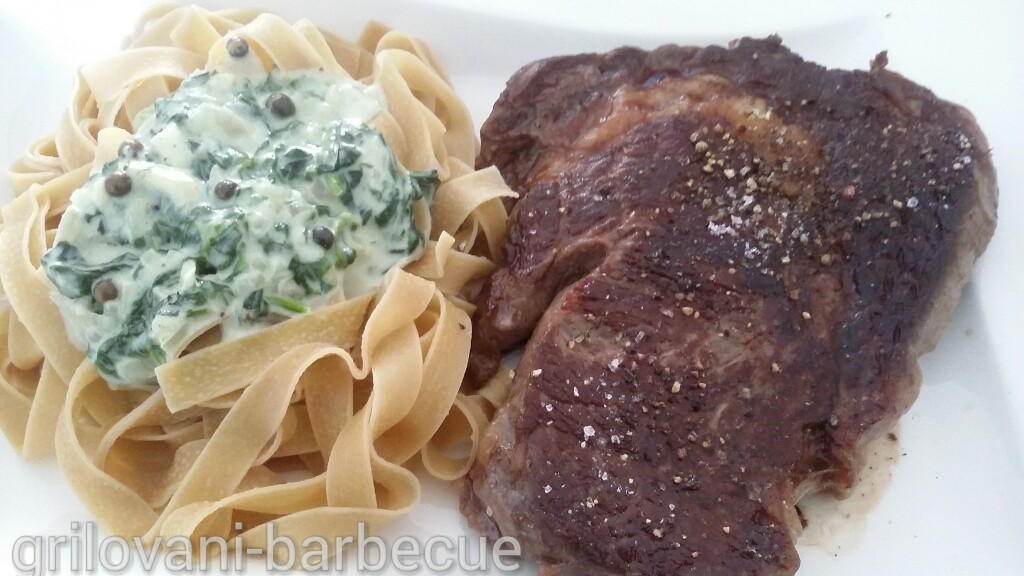 Příloha k spagetam. Dnes k mému steaku s širokýma nudlama.