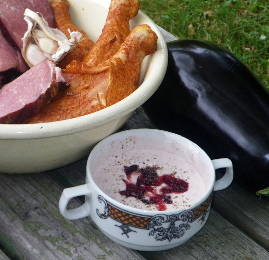 1 zakysaná smetana (možné smíchat s bílým jogurtem) 1 a 1/2 PL brusinkové marmelády 1 KL (malá) bílý pepř špetka soli