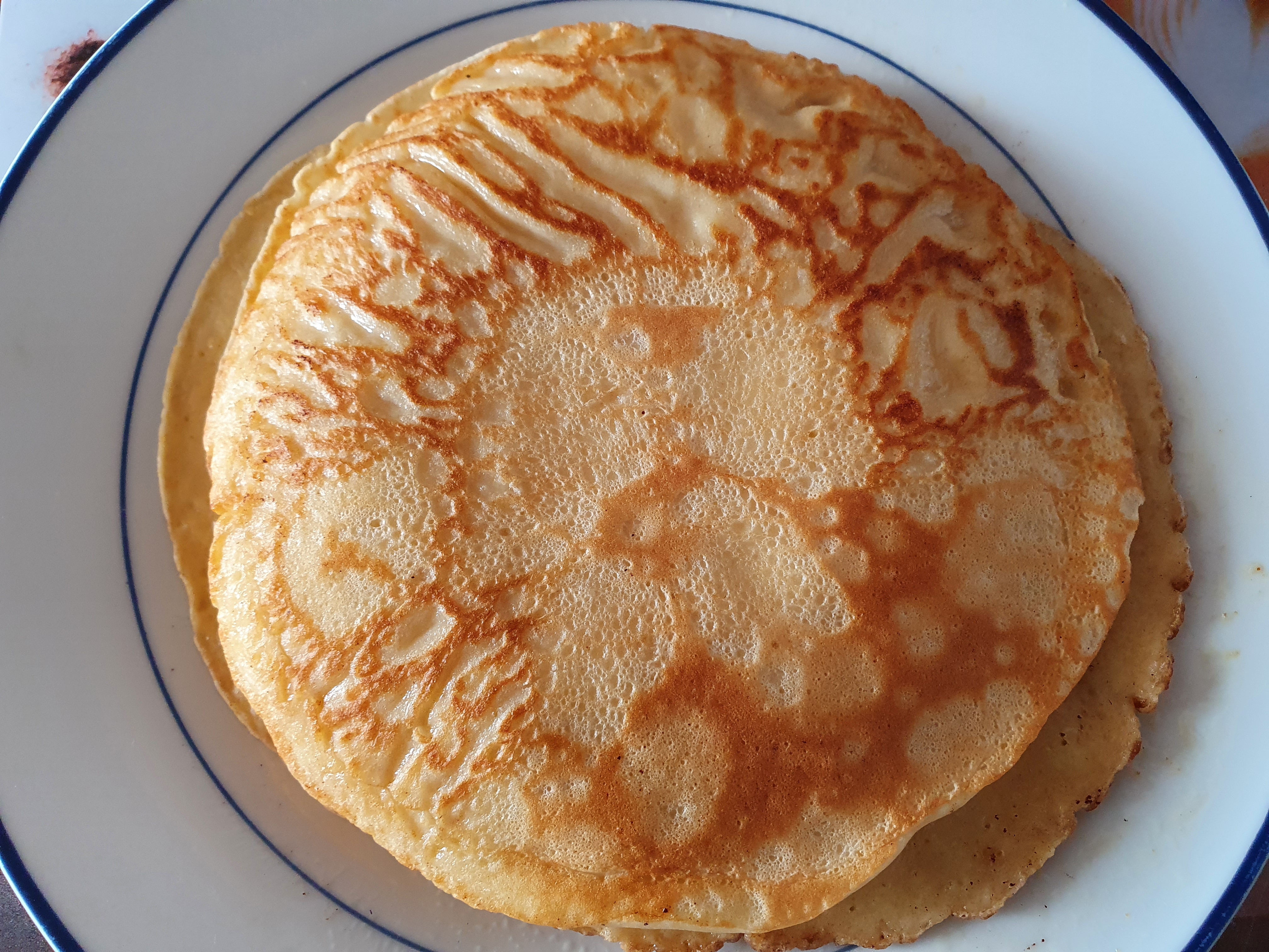 Vse smichame hnetacem nebo rukou s pridanim mleka. Melo by tak vzniknout ridci testo, ktere nalevame na rozehratou panev. Prednosti je nizky obsah cukru.