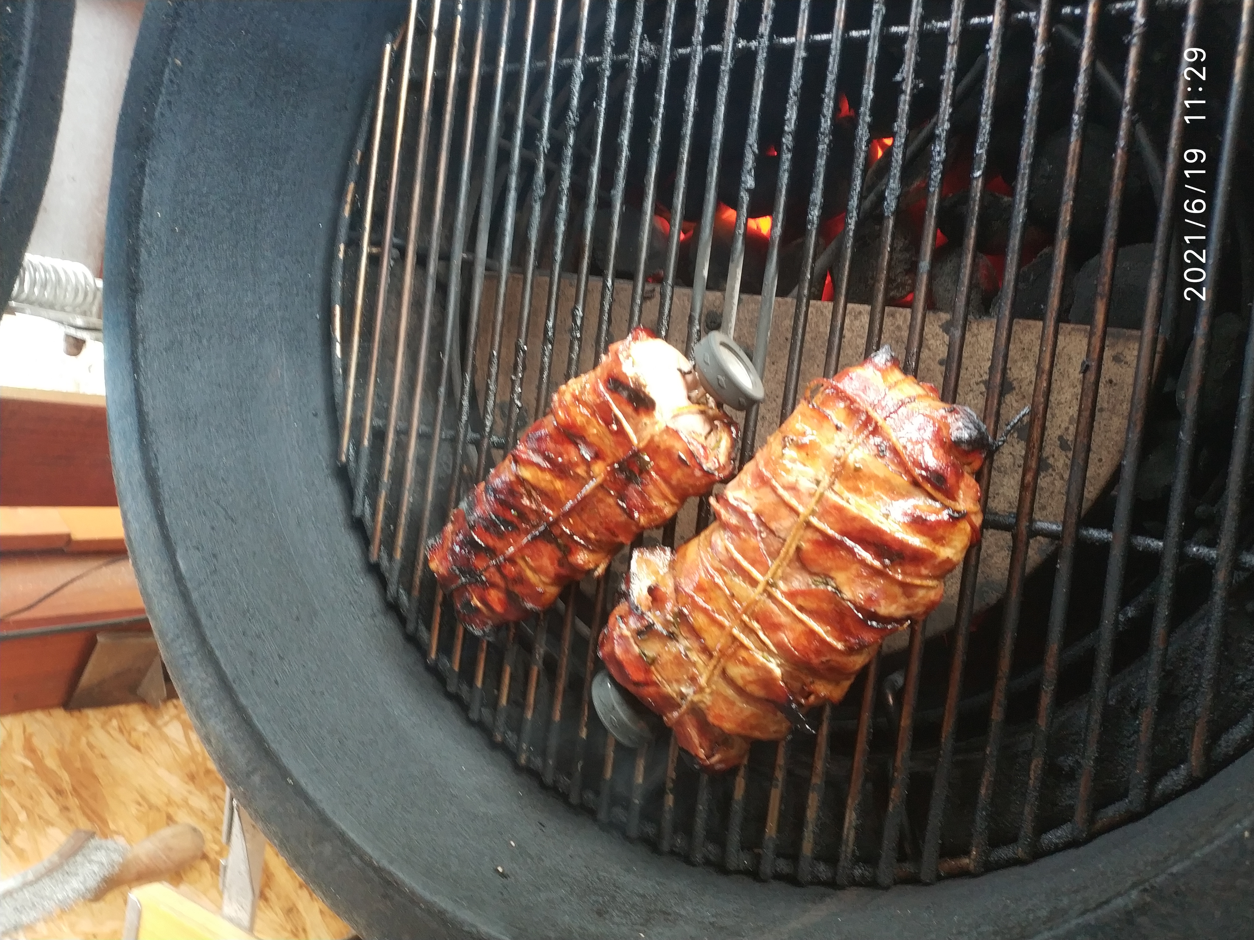 s najemno nakrájené šalvěje, rosmarinu, česneku a přidáním octa, cukru, sójové omáčky, soli a pepře. Mášo si na 2 hodinky naložíme. Prudce ogrilujeme. Pak přeložíme na stranu bez uhlí a pod přiklopeným víkem grilu grilujem do